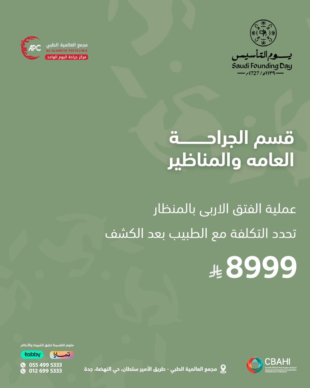 عمليات الفتاق الاربى والفتق السرى بالجراحة تبدء من 4999 ريال وبالمناظير الجراحى تبددء من 8999 ريال