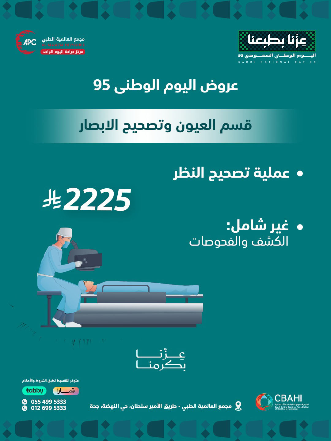عملية تصحيح النظر بالليزك 2225 ريال + متابعتين بعد العملية خلال شهر -غير شامل الكشف و الفحوصات