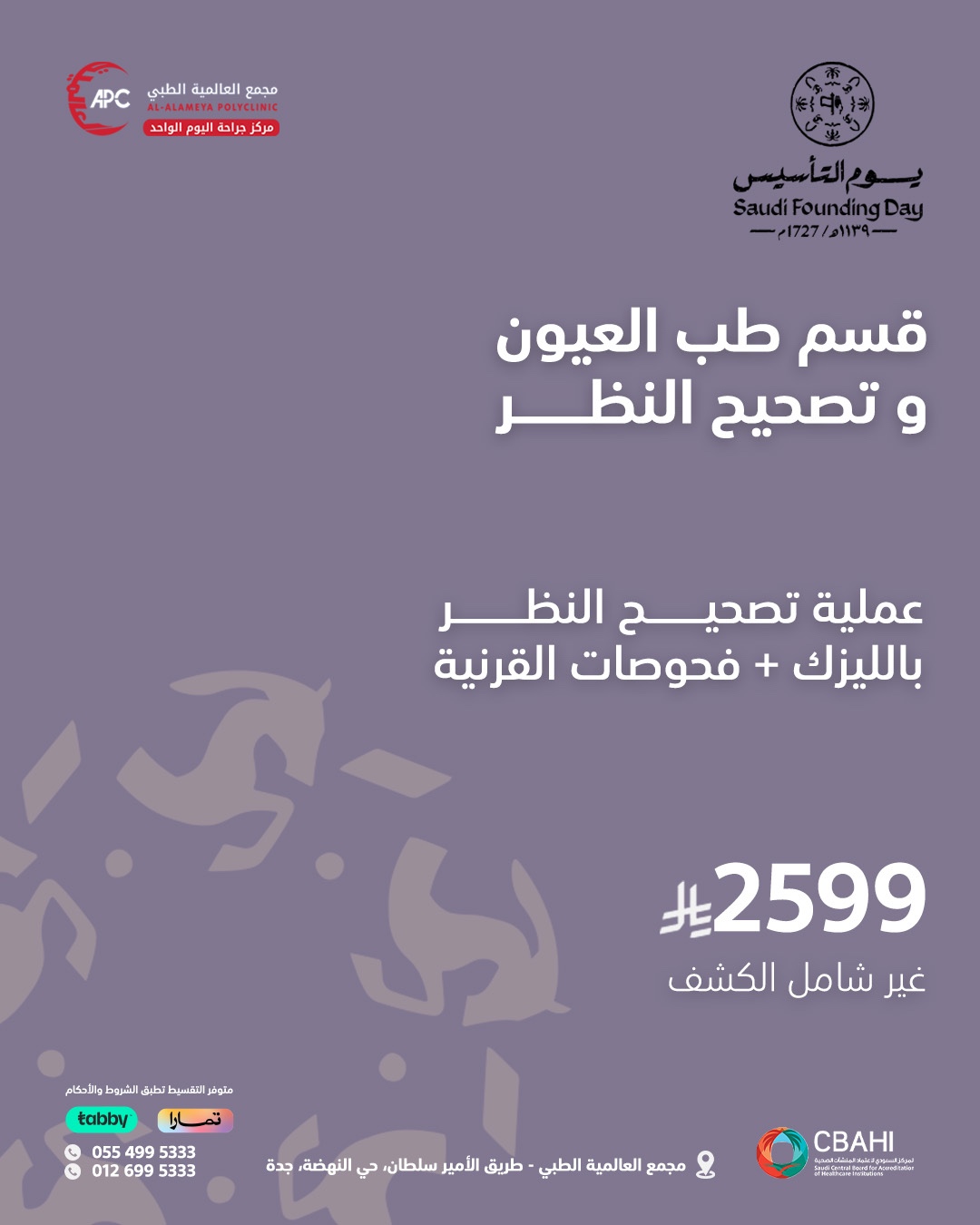 عملية تصحيح النظر بالليزك 2599 ريال + فحوصات القرنية + متابعتين بعد العملية خلال شهر - غير شامل الكشف