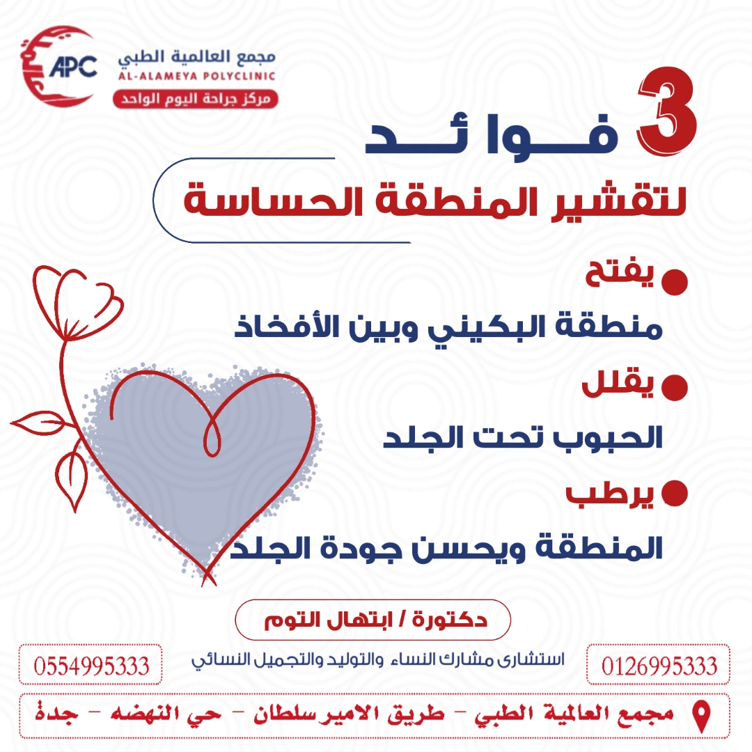الاجراءات التجميلية للمنطقة الحساسه مثل تفتيح المنطقة الحساسه حقن البلاما حقن الفيلر وتوريد منطقة البيكينى تحدد التكلفة بعد معاينة الحاله