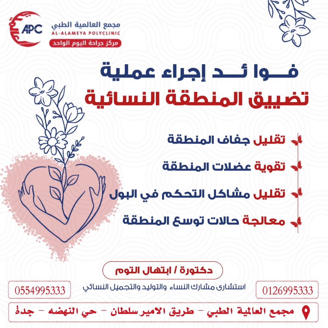 عملية تضييق المهبل تبدء من 4500 ريال وتحديد التكلفة مع الطبيبة بعد الكشف يحسب من داخل قيمة العملية عند الاستفادة من العملية