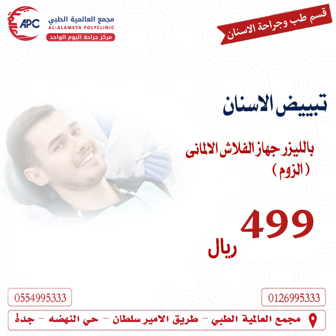 عرض تنظيف وتلميع الاسنان وتبيض الاسنان وتوريد اللثه ( للمدخنين )