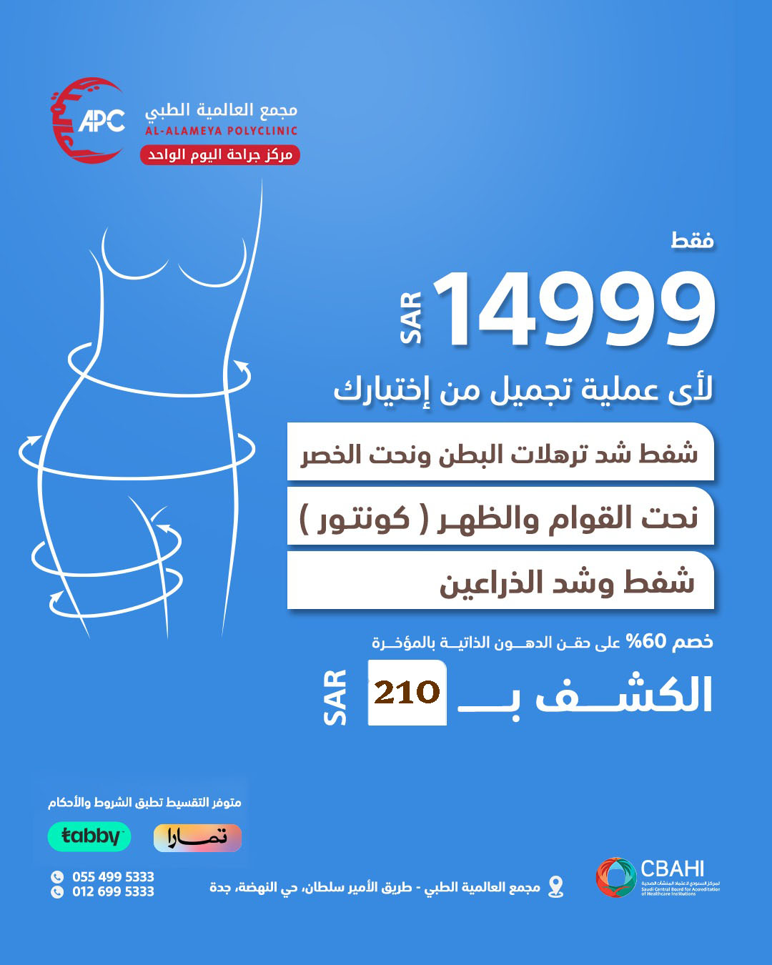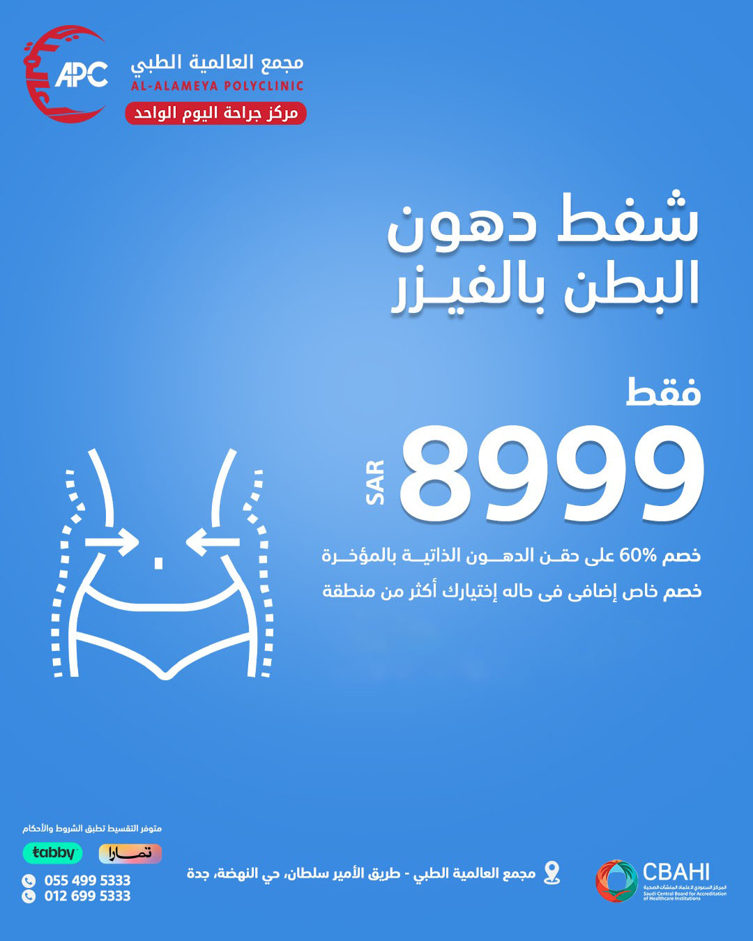شفط الدهون لمنطقة البطن 8999 ريال ويحدد الاستفادة من العرض الطبيب بعد معاينه الحاله