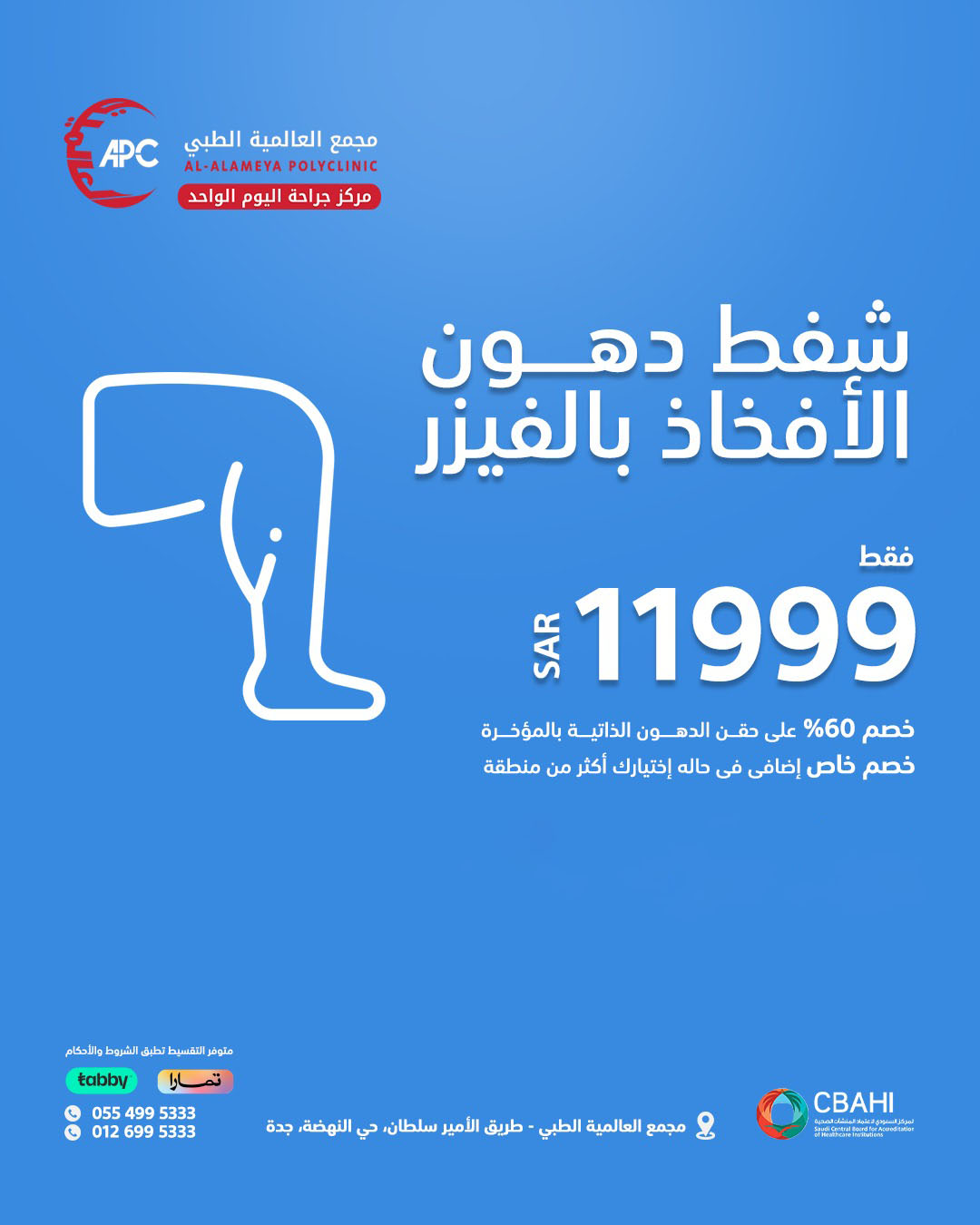 شفط الدهون منطقه الفخذين 11999 ريال ويحدد الاستفادة من العرض الطبيب بعد معاينة الحاله