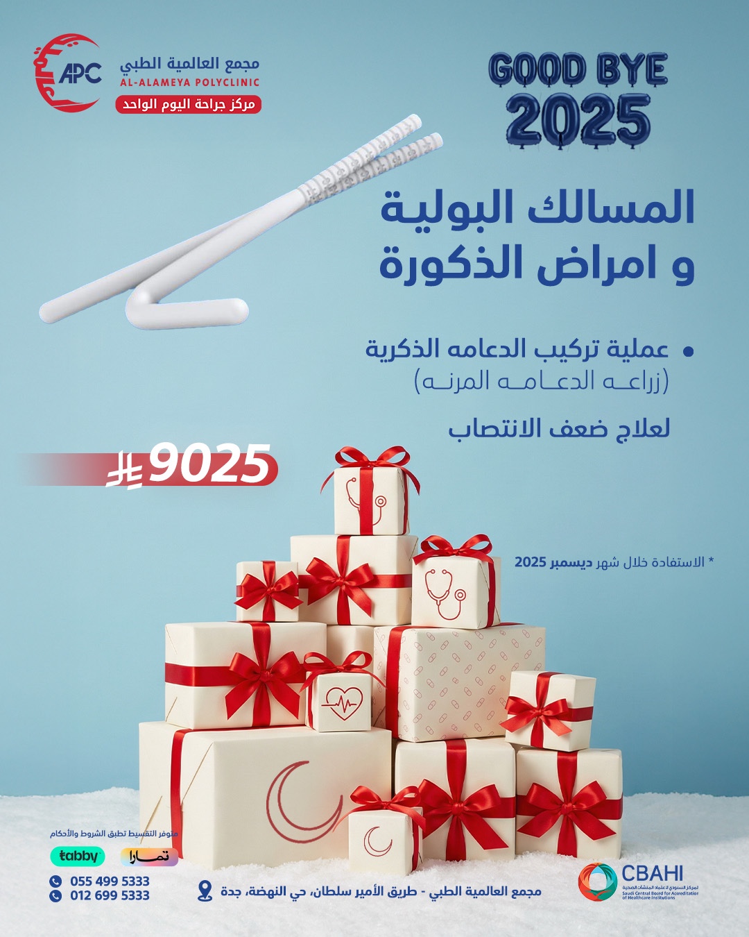 •  الاستفادة من العرض خلال شهر ديسمبر 2025 عملية الدعامة المرنه 9025 ريال