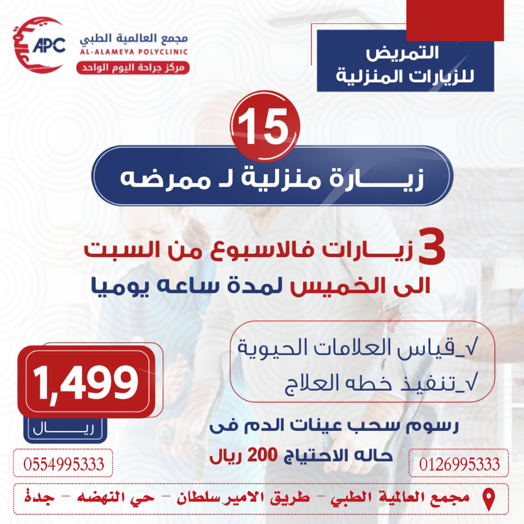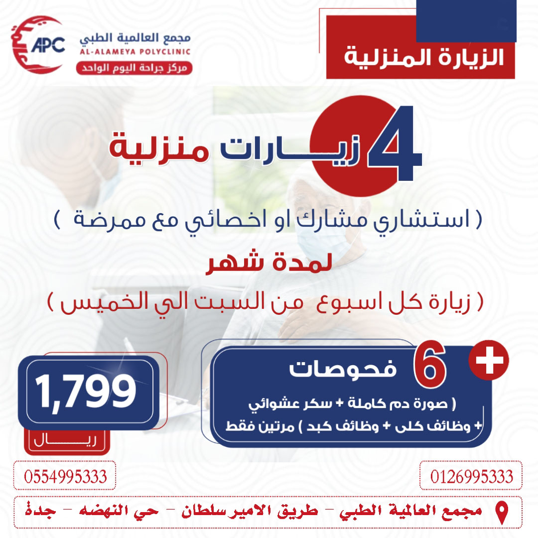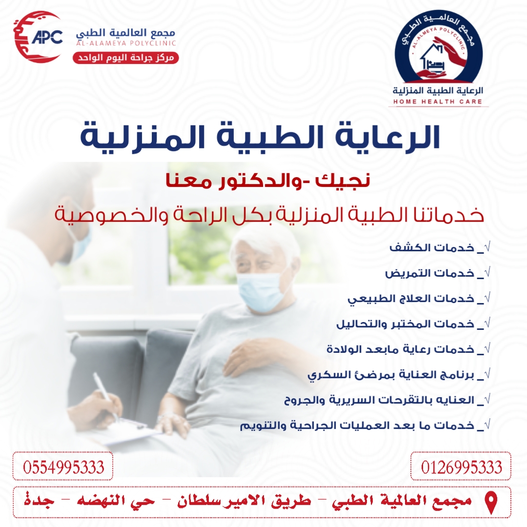 تواصل مع قسم الرعاية الطبيبة المنزلية - بمجمع العالمية الطبي