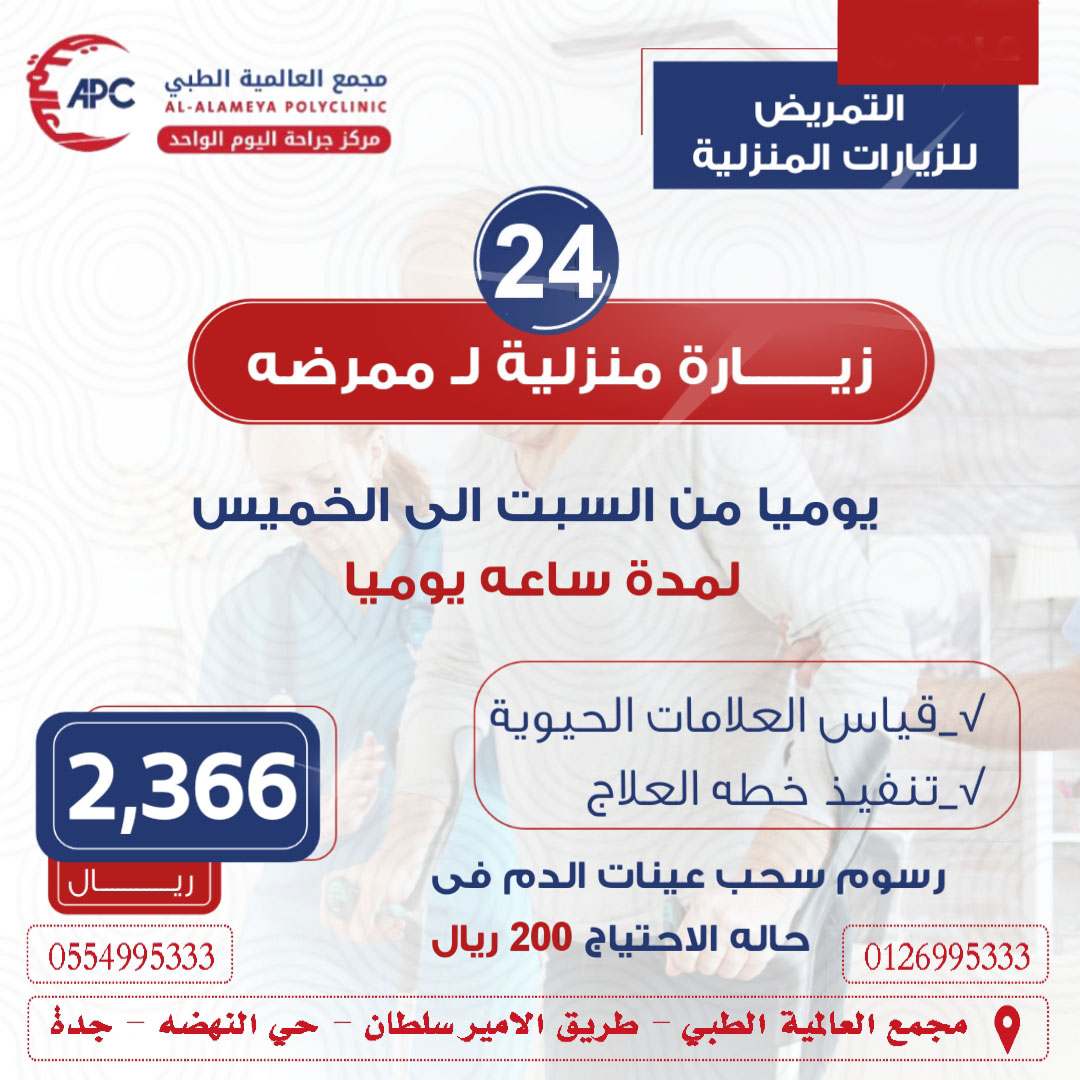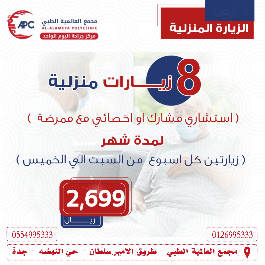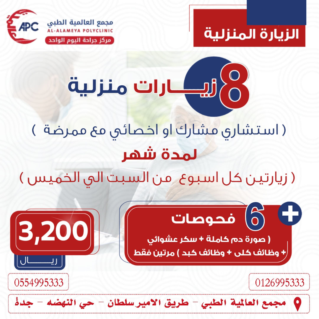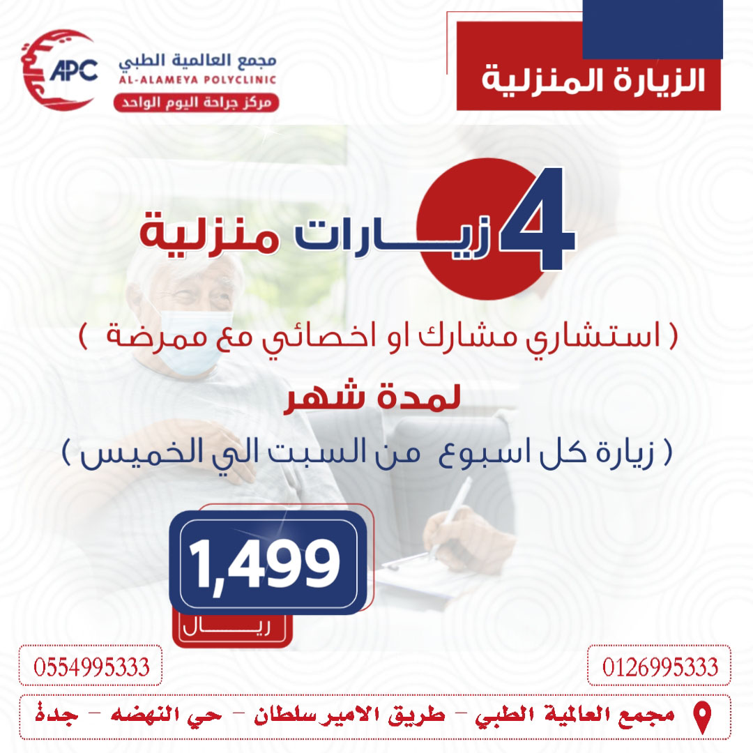 تواصل مع قسم الرعاية الطبيبة المنزلية - بمجمع العالمية الطبي