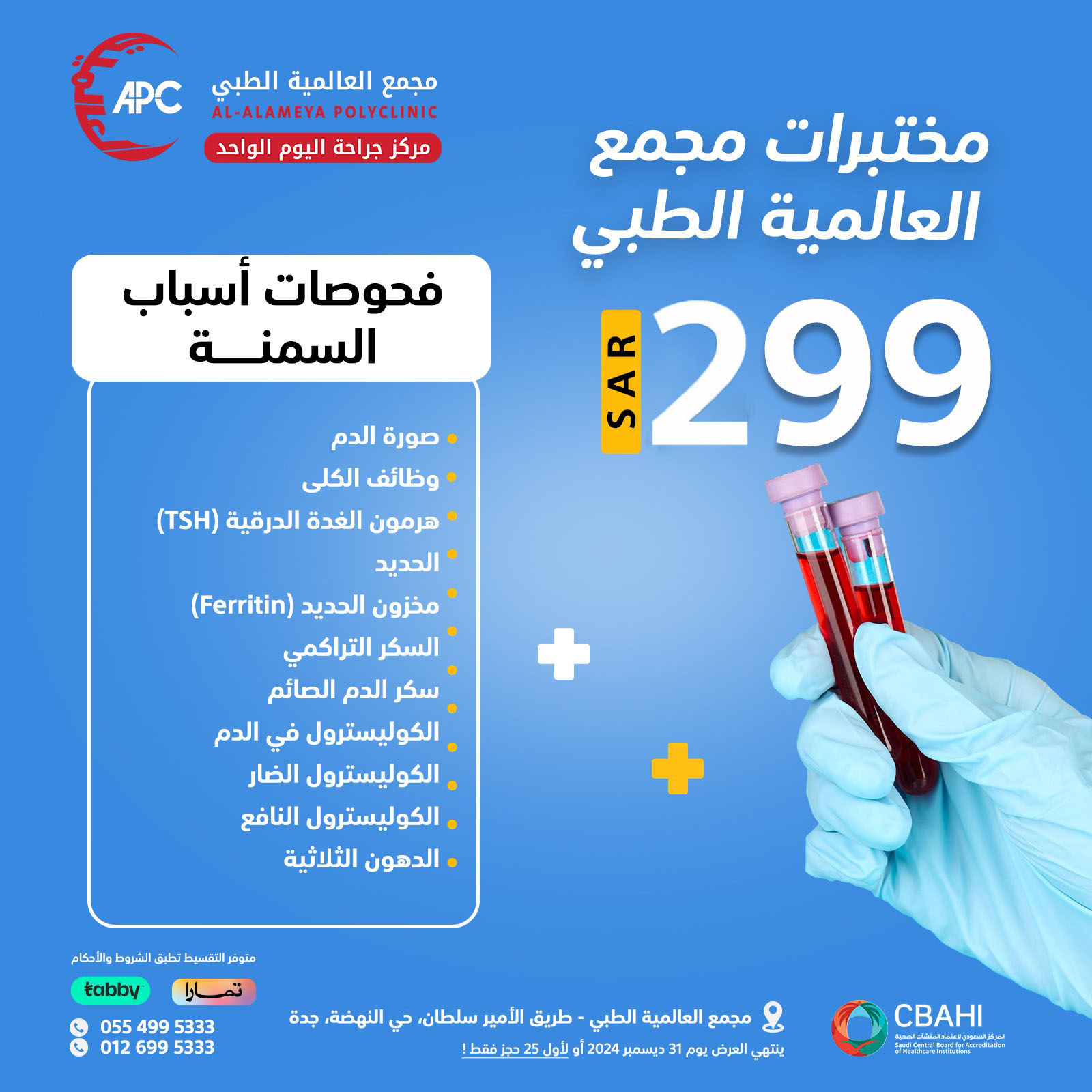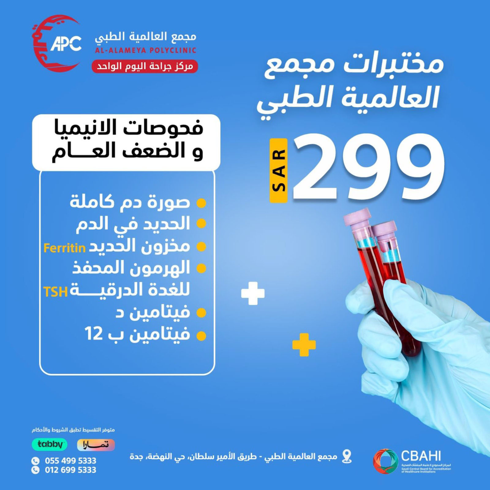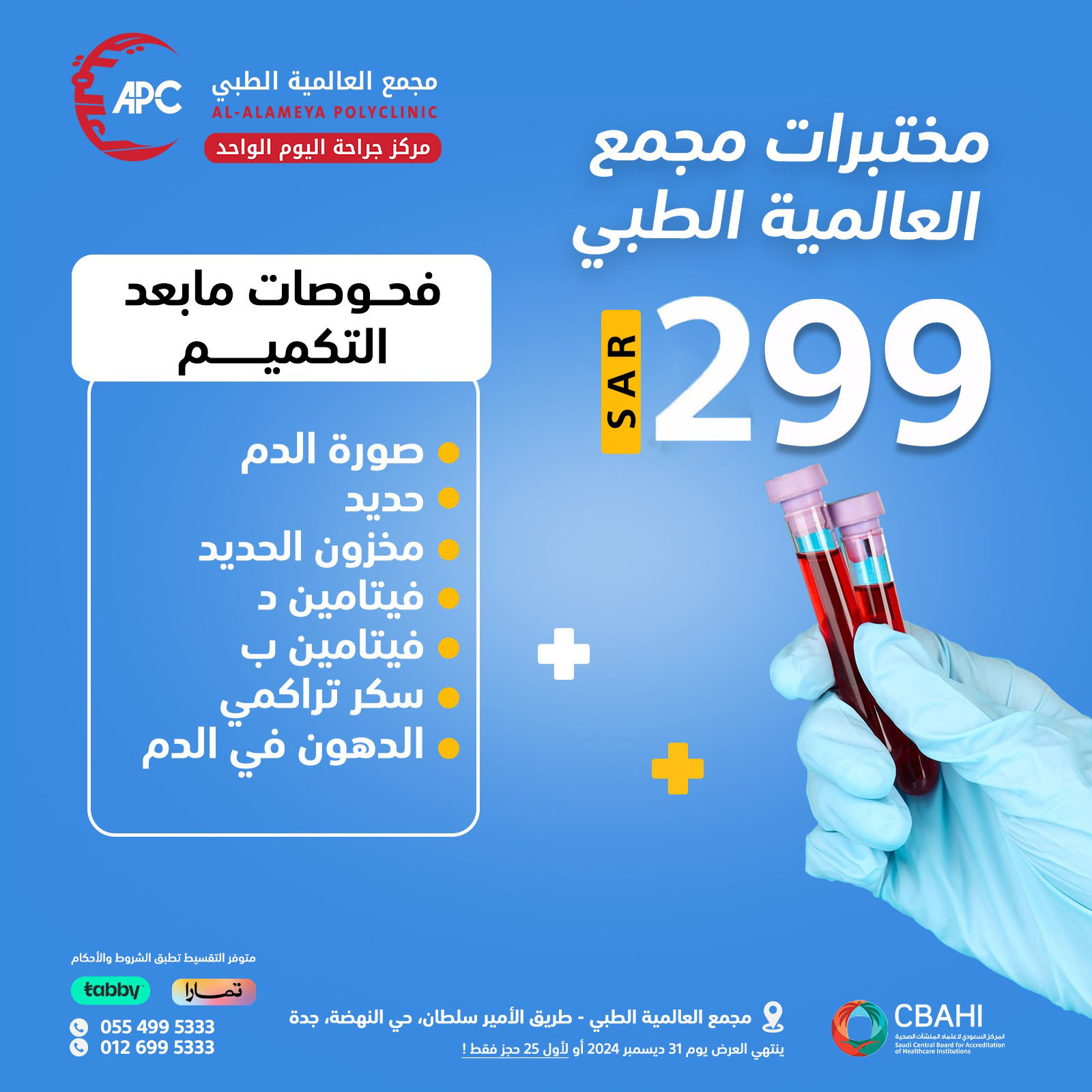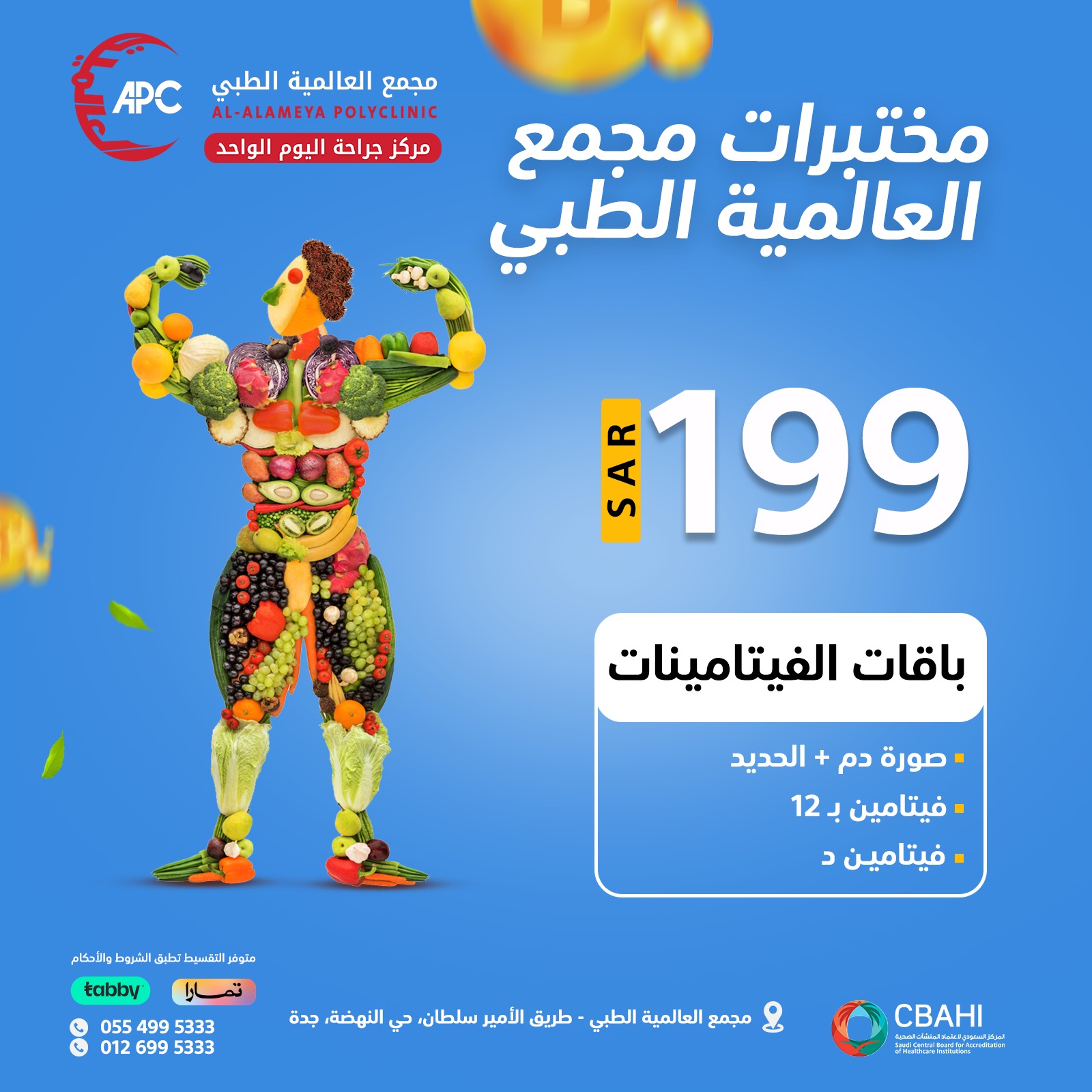 الفحص الطبى الشامل 17 تحليل + فيتامين دال + فيتامين ب12 بـ 399 ريال