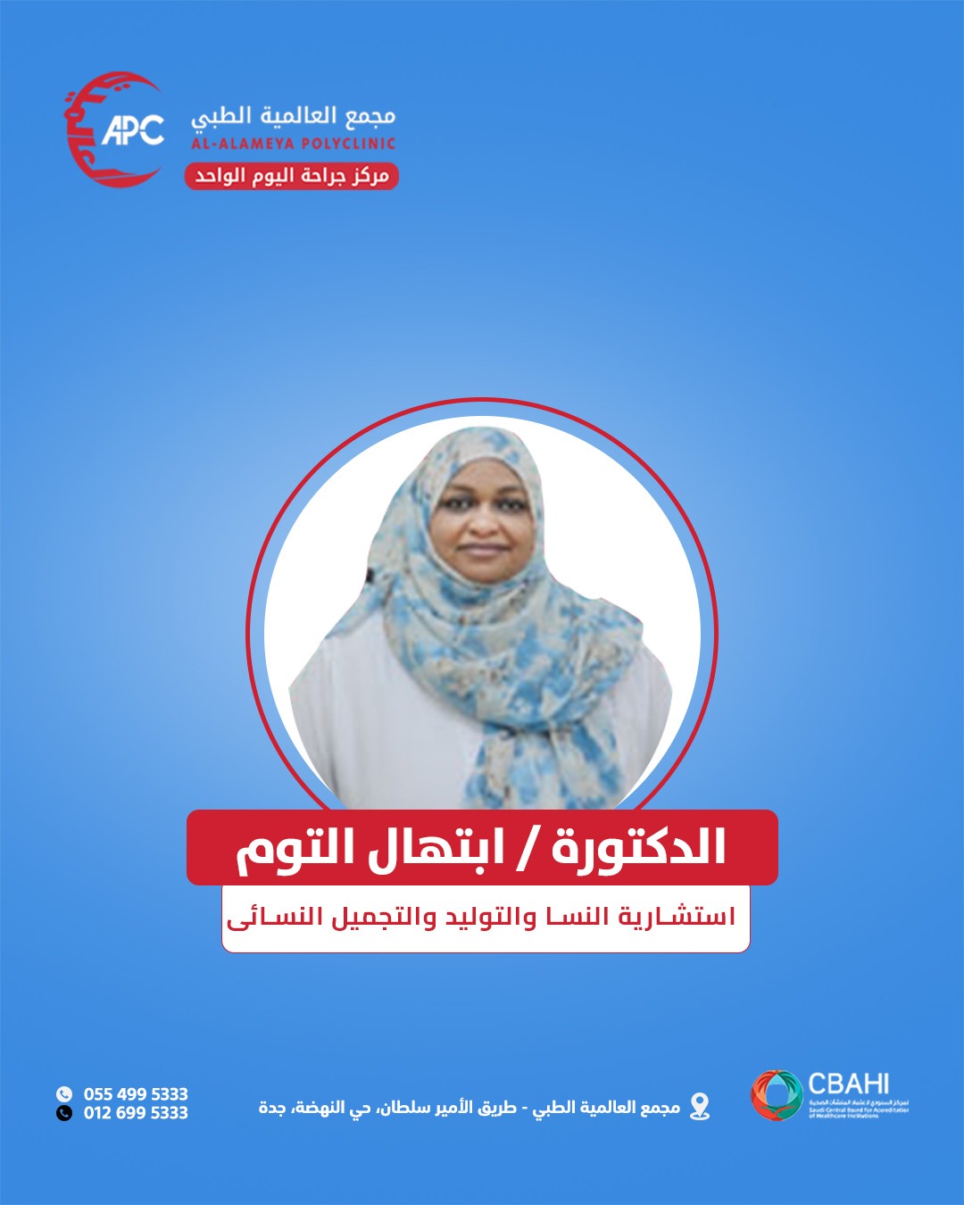 الدكتورة / ابتهال التوم - استشارية النسا والتجميل النسائي