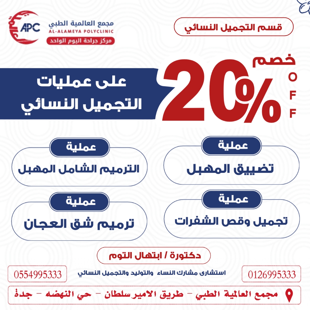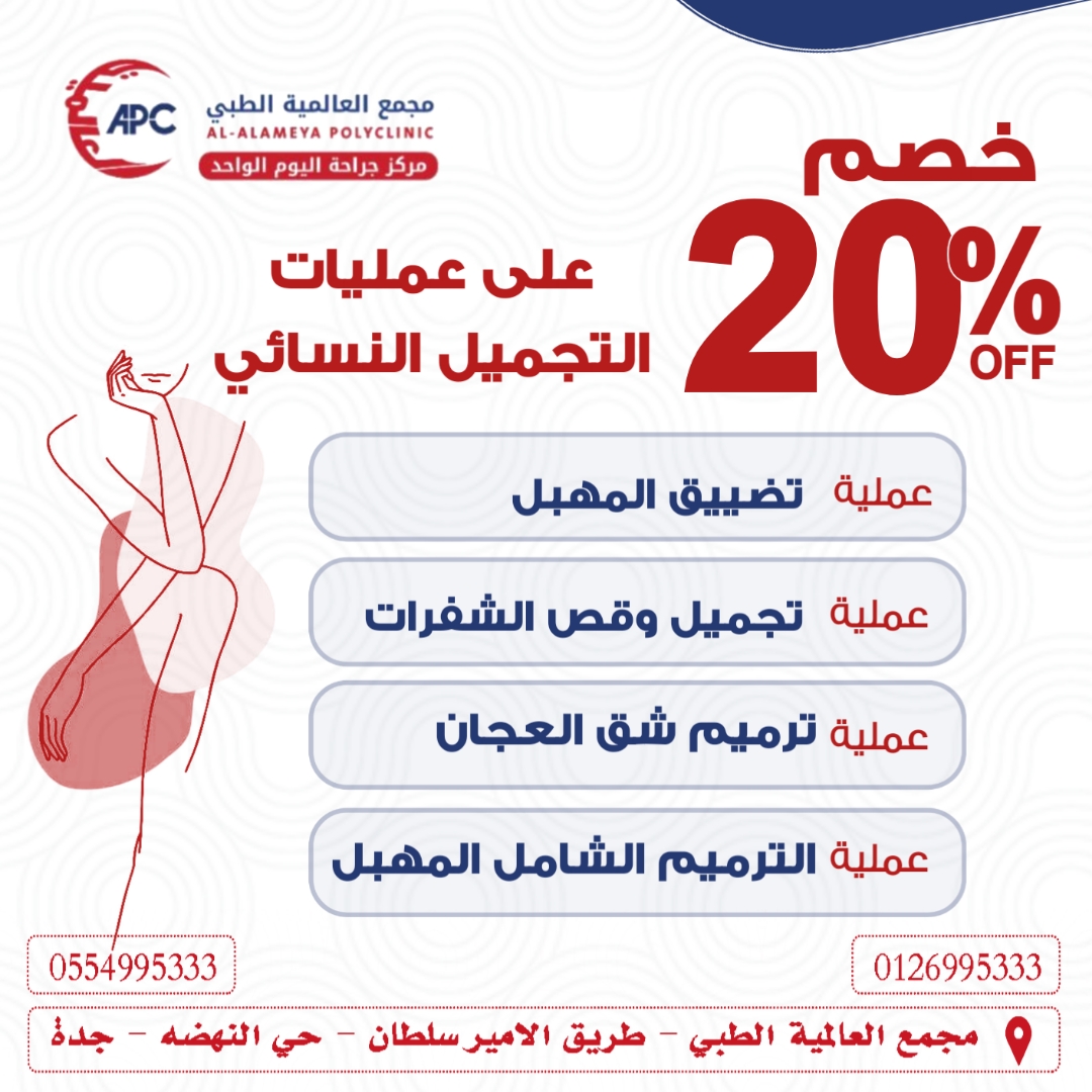 خصم 20 % ع عمليات تضيق المهبل او تجميل الشفرات او الترميم الشامل للمهبل
