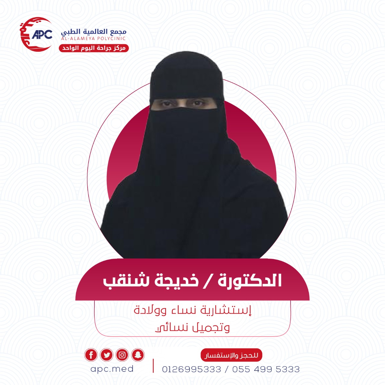الدكتورة / خديجة شنقب - استشارية النسا والتوليد والتجميل النسائى - استشارية سعودية - خبره اكثر من 30 عام فى عمليات التجميل النسائى